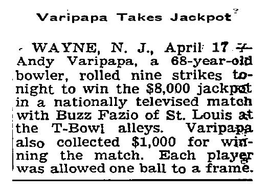 When timeless Professional Bowler Association star Carmen Salvino, a long-time very close friend of Andy, laces up his bowling shoes and throws his first ball in competition in the Go Bowling! PBA 60th Anniversary Classic on Tuesday, Feb. 13, at Woodland Bowl, he’ll set a record that will never be matched.